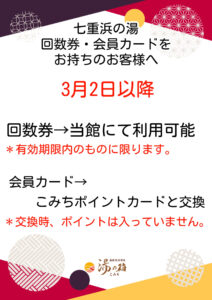 七重浜の湯 回数券・会員カードを お持ちのお客様へ