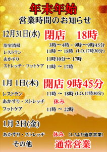 【公式】函館高温源泉 湯の箱 こみち > 新着情報 > 年末年始営業時間